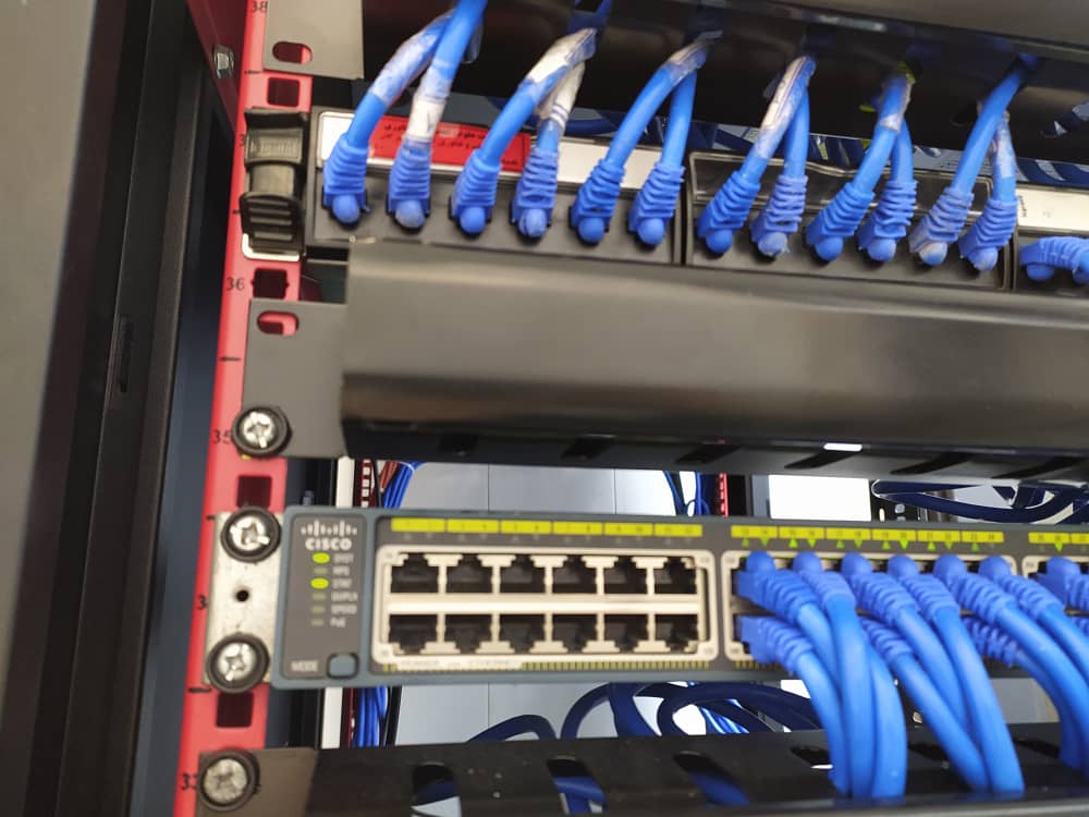 بعد از انجام کابلکشی نوبت به نصب رک، آرایش رک، نصب پچ پنل، پچ کورد، سوئیچها، روترها، سرورها و تجهیزات شبکه داخل رک میرسد. در نهایت تمامی نودها، پریزها، کیستونها نصب میگردد.